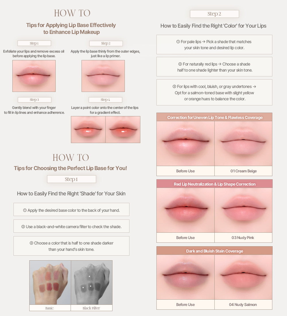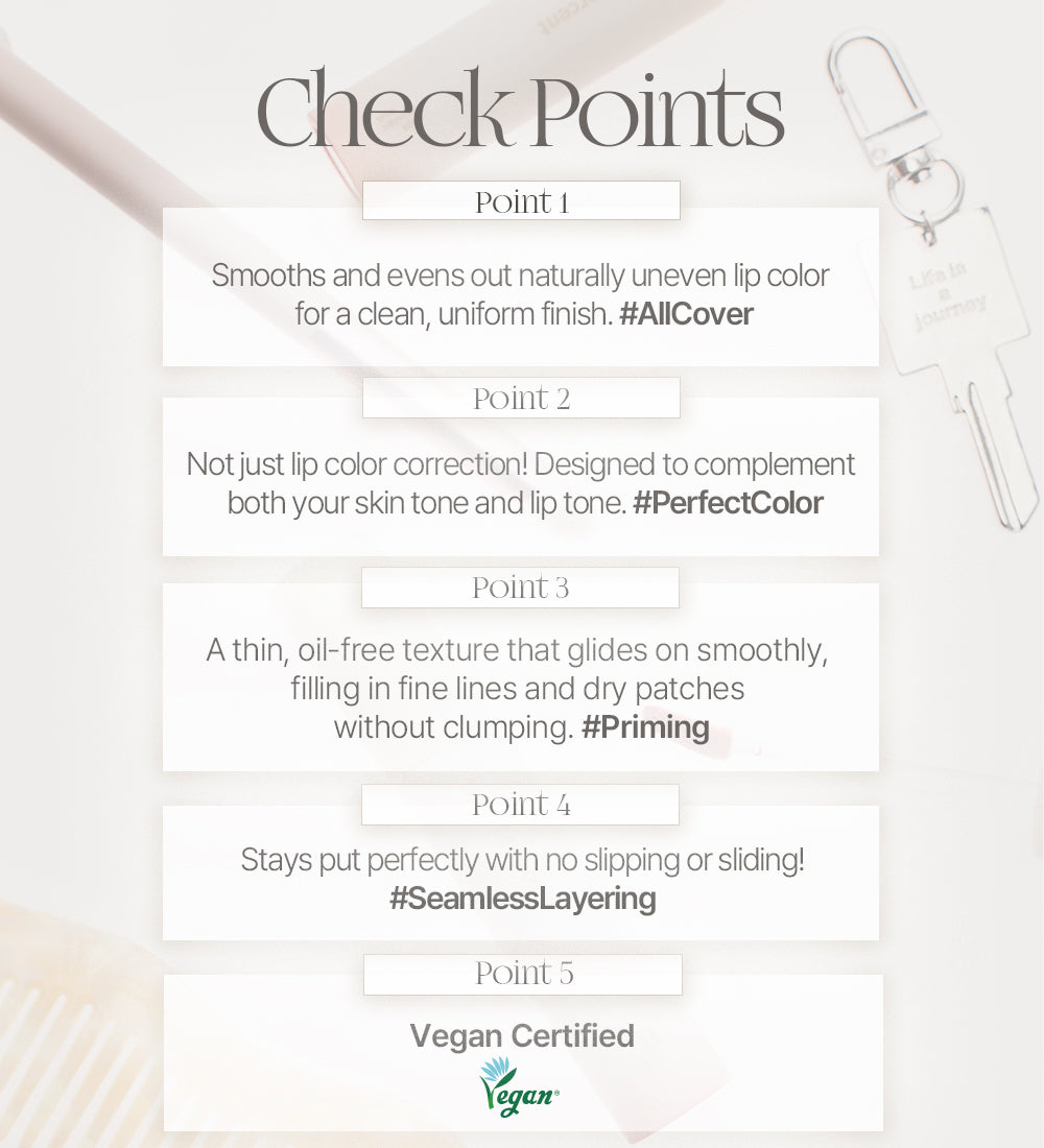 - [All Cover Lip Base] Smooths and evens out naturally uneven lip color for a clean, flawless finish. A must-have lip base that helps bring out your desired lip color to perfection.
